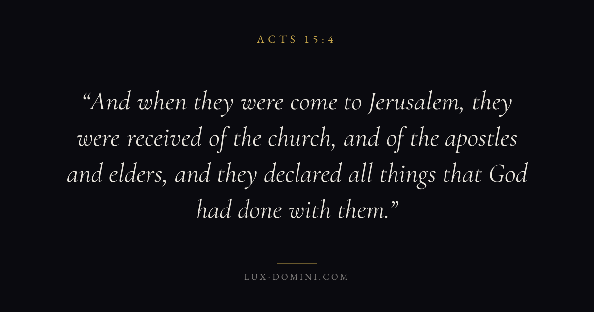 And when they were come to Jerusalem, they were received of the church, and of the apostles and elders, and they declared all things that God had done with them.