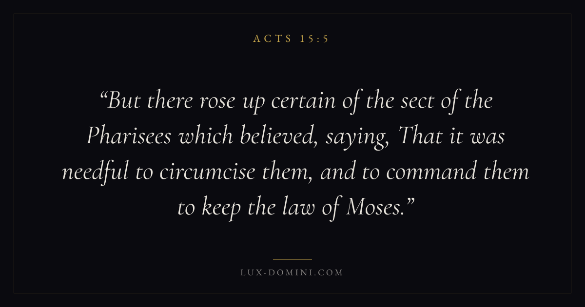 But there rose up certain of the sect of the Pharisees which believed, saying, That it was needful to circumcise them, and to command them to keep the law of Moses.