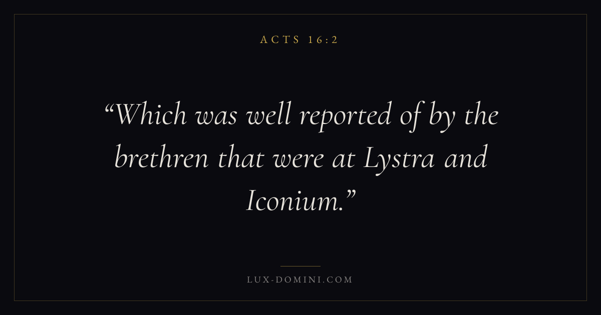 Which was well reported of by the brethren that were at Lystra and Iconium.