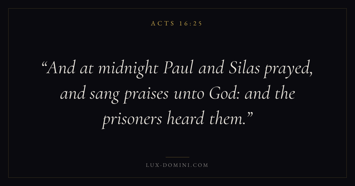And at midnight Paul and Silas prayed, and sang praises unto God: and the prisoners heard them.