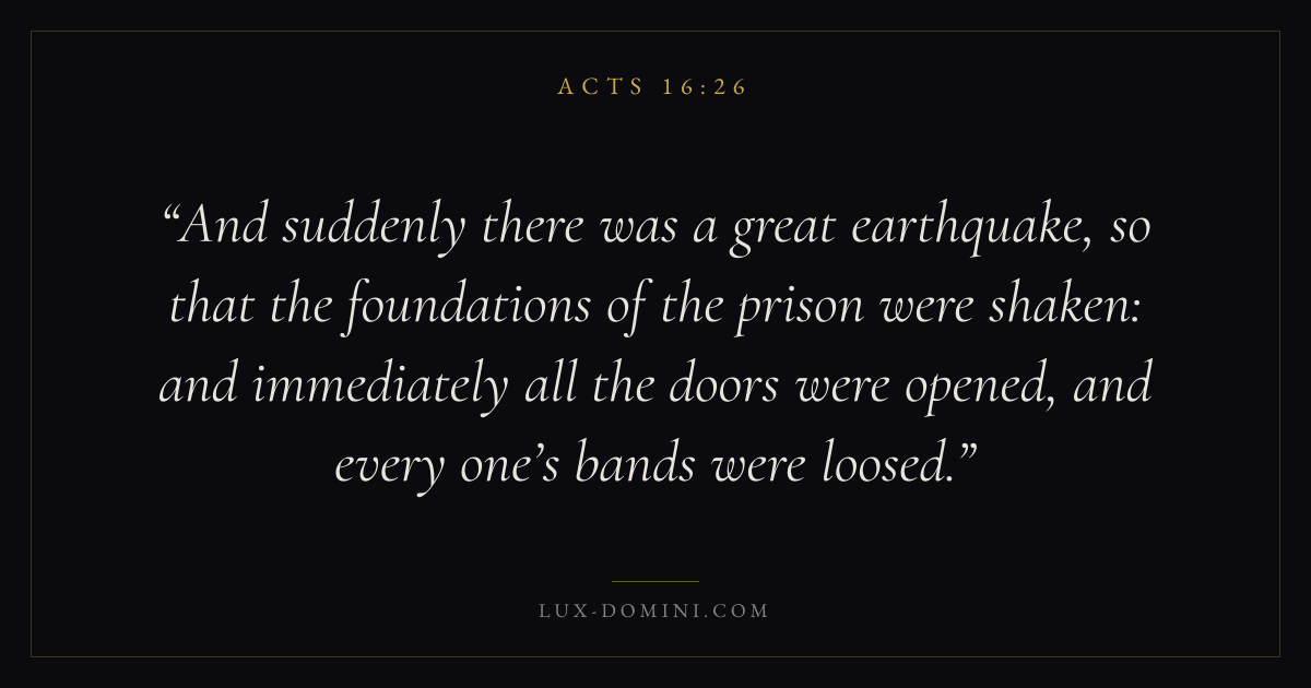 And suddenly there was a great earthquake, so that the foundations of the prison were shaken: and immediately all the doors were opened, and every one’s bands were loosed.