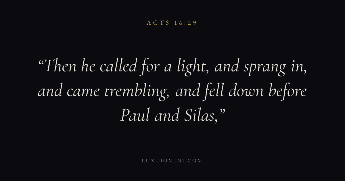 Then he called for a light, and sprang in, and came trembling, and fell down before Paul and Silas,