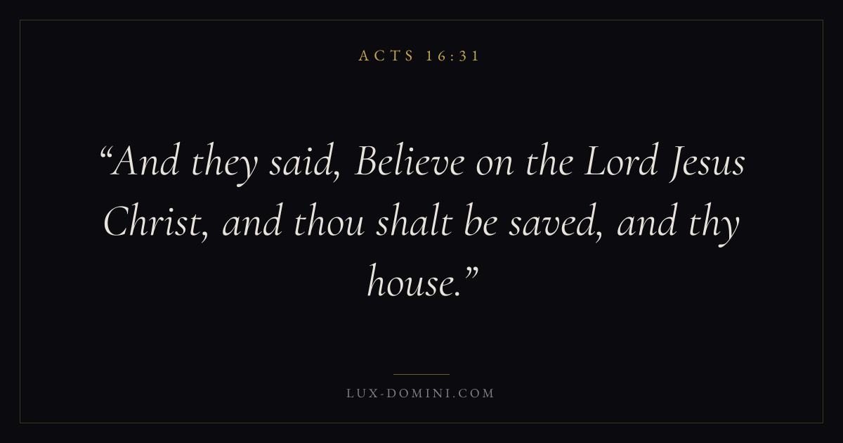 And they said, Believe on the Lord Jesus Christ, and thou shalt be saved, and thy house.