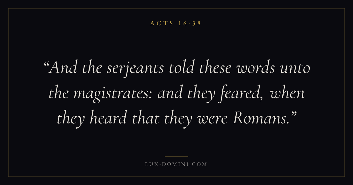 And the serjeants told these words unto the magistrates: and they feared, when they heard that they were Romans.