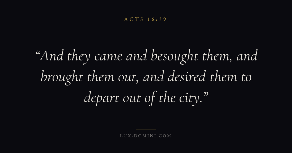And they came and besought them, and brought them out, and desired them to depart out of the city.