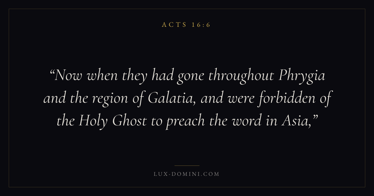 Now when they had gone throughout Phrygia and the region of Galatia, and were forbidden of the Holy Ghost to preach the word in Asia,
