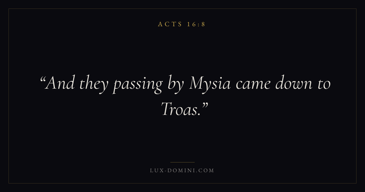 And they passing by Mysia came down to Troas.