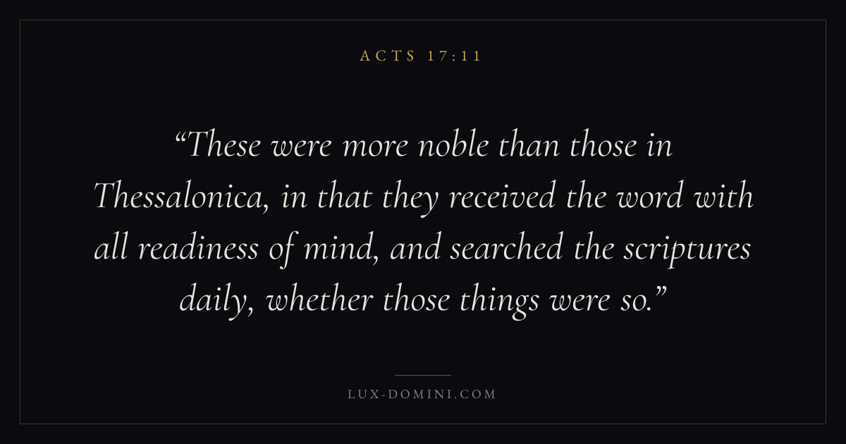 These were more noble than those in Thessalonica, in that they received the word with all readiness of mind, and searched the scriptures daily, whether those things were so.