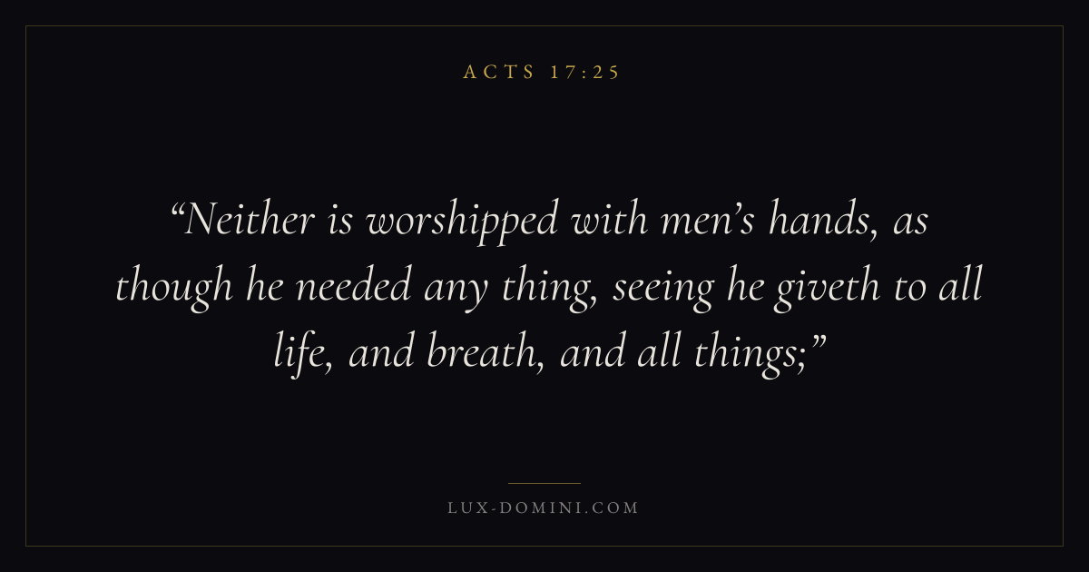 Neither is worshipped with men’s hands, as though he needed any thing, seeing he giveth to all life, and breath, and all things;