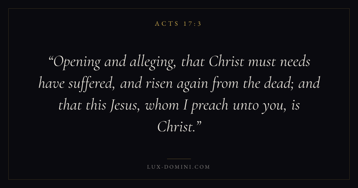 Opening and alleging, that Christ must needs have suffered, and risen again from the dead; and that this Jesus, whom I preach unto you, is Christ.