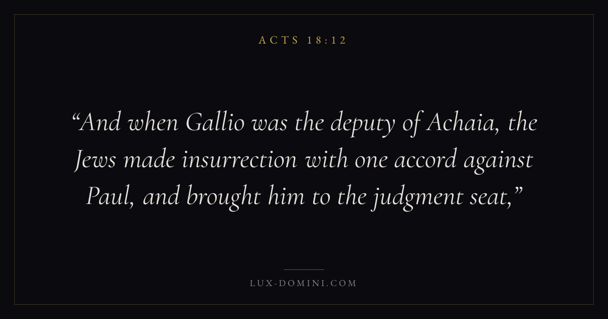 And when Gallio was the deputy of Achaia, the Jews made insurrection with one accord against Paul, and brought him to the judgment seat,
