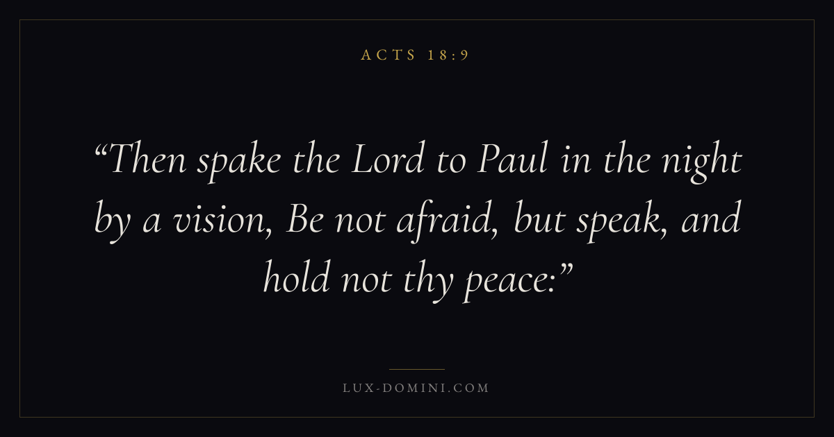 Then spake the Lord to Paul in the night by a vision, Be not afraid, but speak, and hold not thy peace: