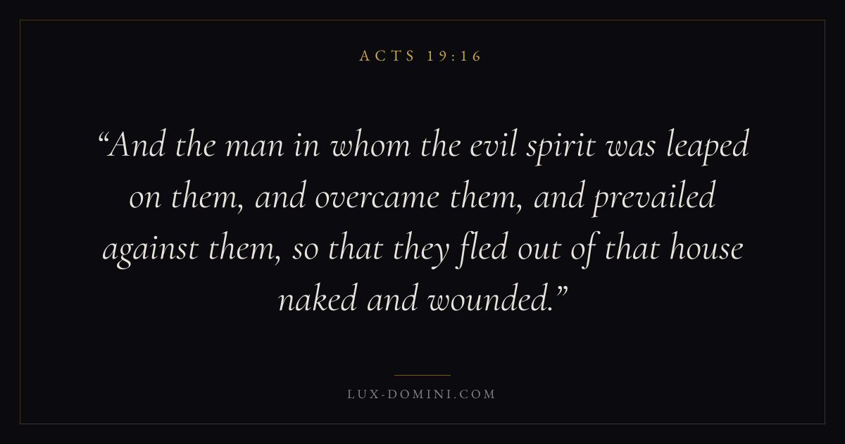 And the man in whom the evil spirit was leaped on them, and overcame them, and prevailed against them, so that they fled out of that house naked and wounded.