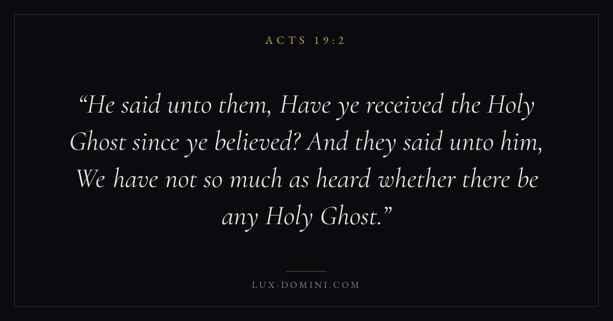 He said unto them, Have ye received the Holy Ghost since ye believed? And they said unto him, We have not so much as heard whether there be any Holy Ghost.