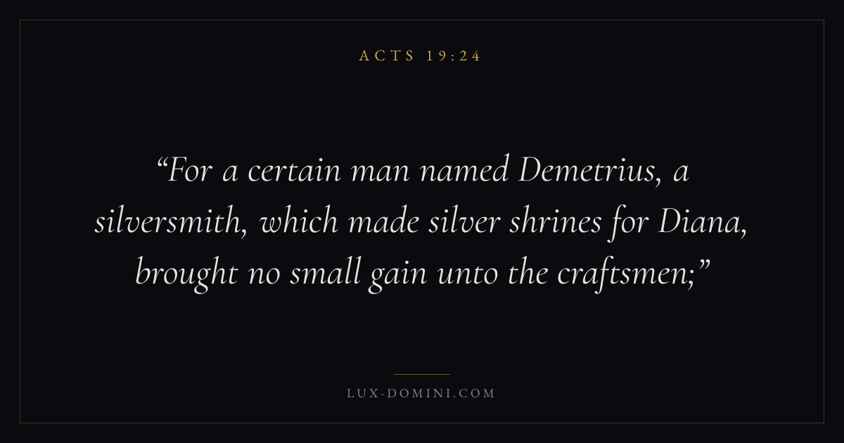 For a certain man named Demetrius, a silversmith, which made silver shrines for Diana, brought no small gain unto the craftsmen;
