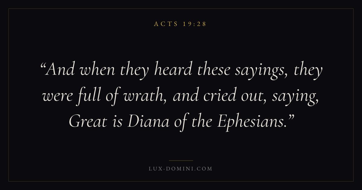 And when they heard these sayings, they were full of wrath, and cried out, saying, Great is Diana of the Ephesians.