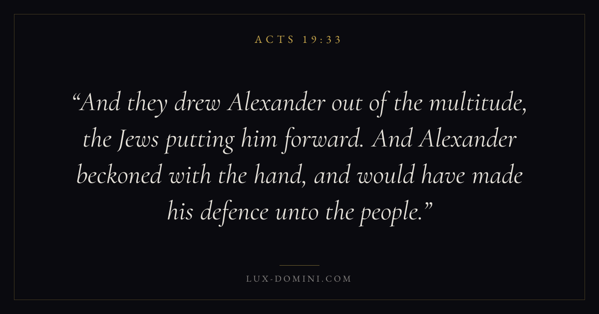 And they drew Alexander out of the multitude, the Jews putting him forward. And Alexander beckoned with the hand, and would have made his defence unto the people.