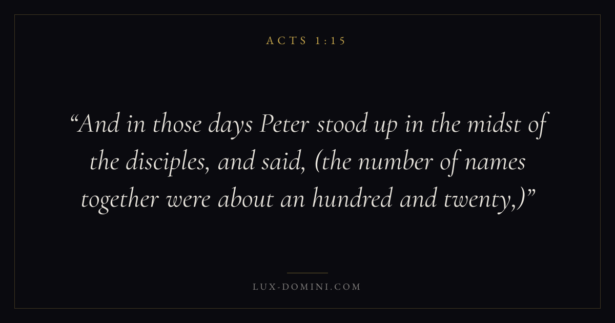 And in those days Peter stood up in the midst of the disciples, and said, (the number of names together were about an hundred and twenty,)