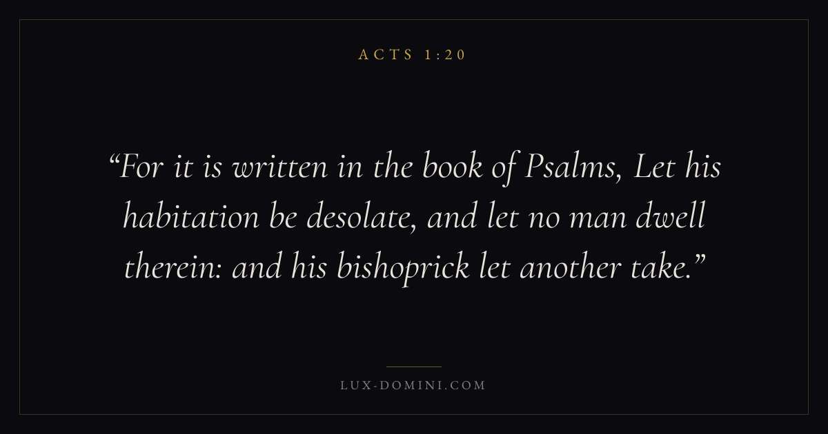 For it is written in the book of Psalms, Let his habitation be desolate, and let no man dwell therein: and his bishoprick let another take.