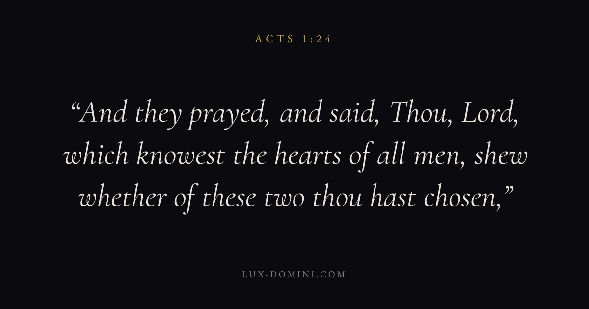 And they prayed, and said, Thou, Lord, which knowest the hearts of all men, shew whether of these two thou hast chosen,