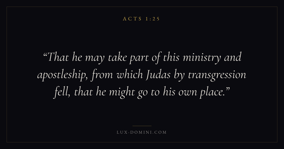 That he may take part of this ministry and apostleship, from which Judas by transgression fell, that he might go to his own place.