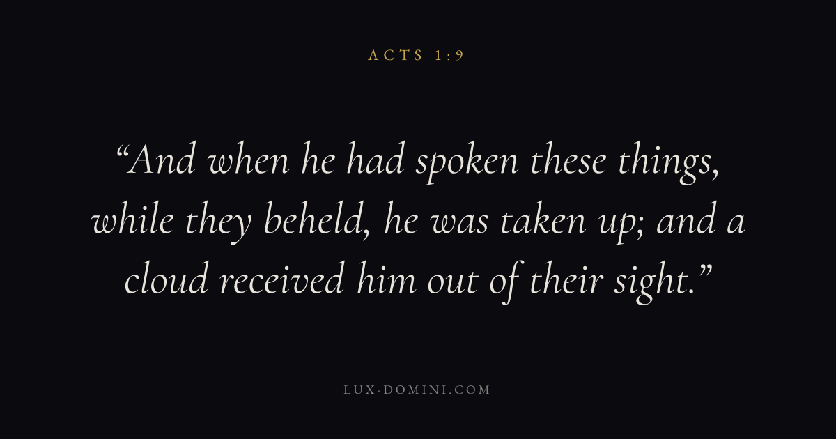 And when he had spoken these things, while they beheld, he was taken up; and a cloud received him out of their sight.
