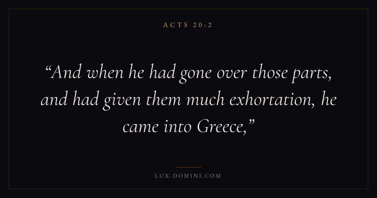And when he had gone over those parts, and had given them much exhortation, he came into Greece,