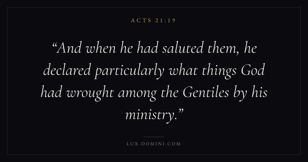 And when he had saluted them, he declared particularly what things God had wrought among the Gentiles by his ministry.
