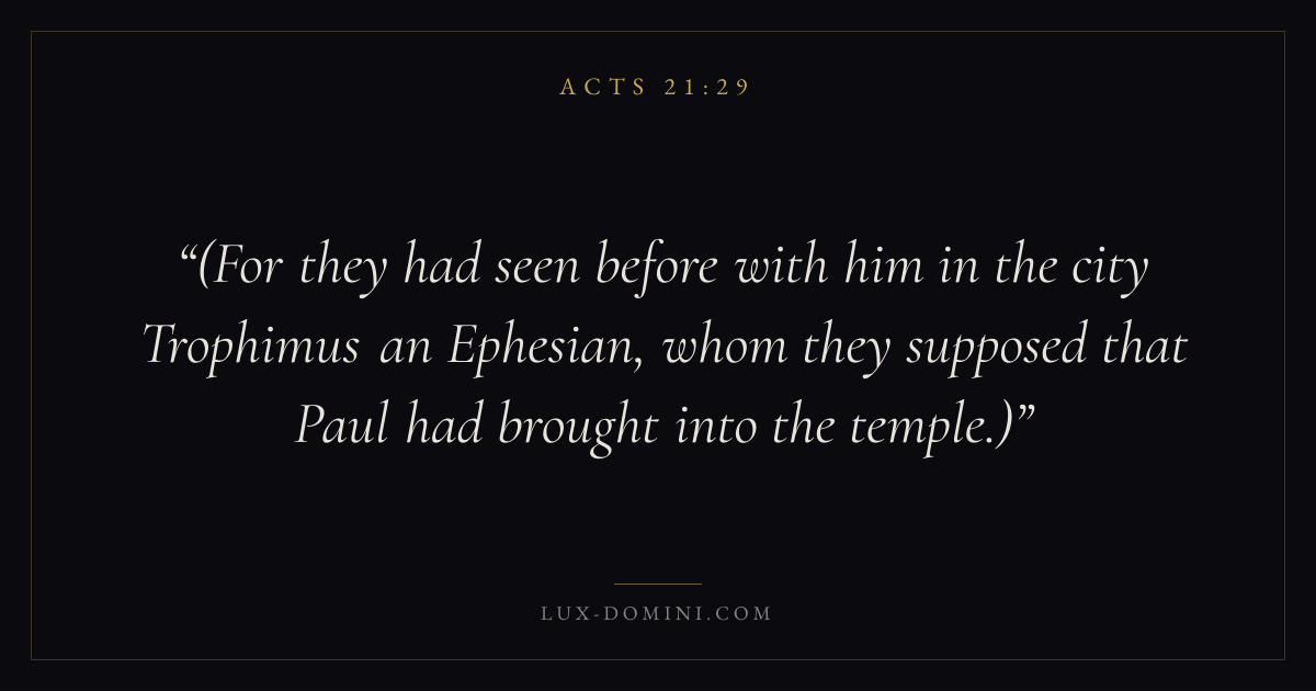 (For they had seen before with him in the city Trophimus an Ephesian, whom they supposed that Paul had brought into the temple.)