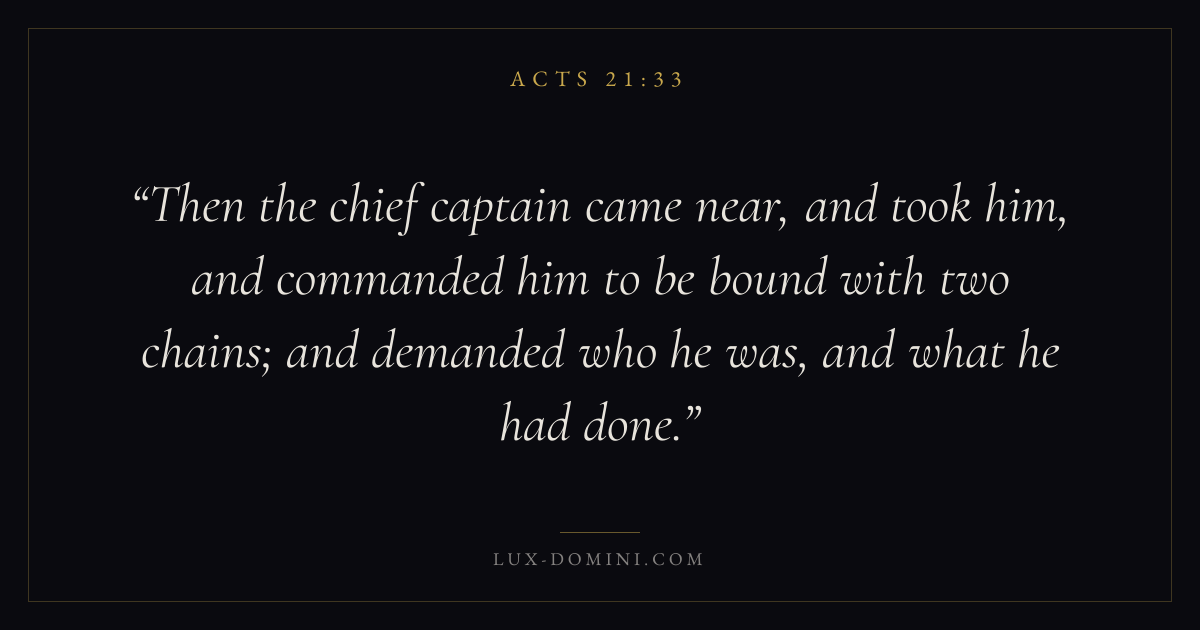 Then the chief captain came near, and took him, and commanded him to be bound with two chains; and demanded who he was, and what he had done.