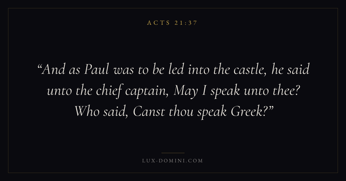 And as Paul was to be led into the castle, he said unto the chief captain, May I speak unto thee? Who said, Canst thou speak Greek?