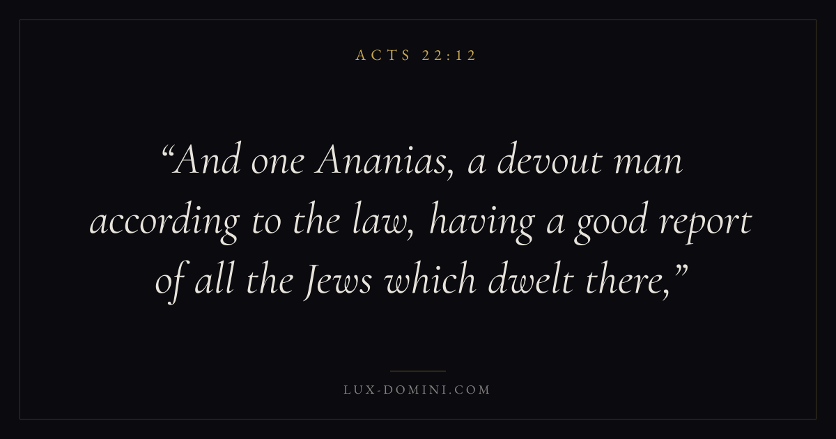 And one Ananias, a devout man according to the law, having a good report of all the Jews which dwelt there,