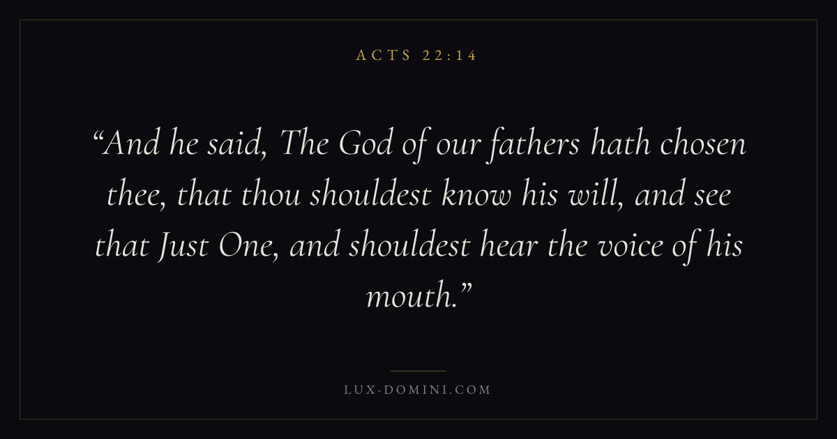 And he said, The God of our fathers hath chosen thee, that thou shouldest know his will, and see that Just One, and shouldest hear the voice of his mouth.
