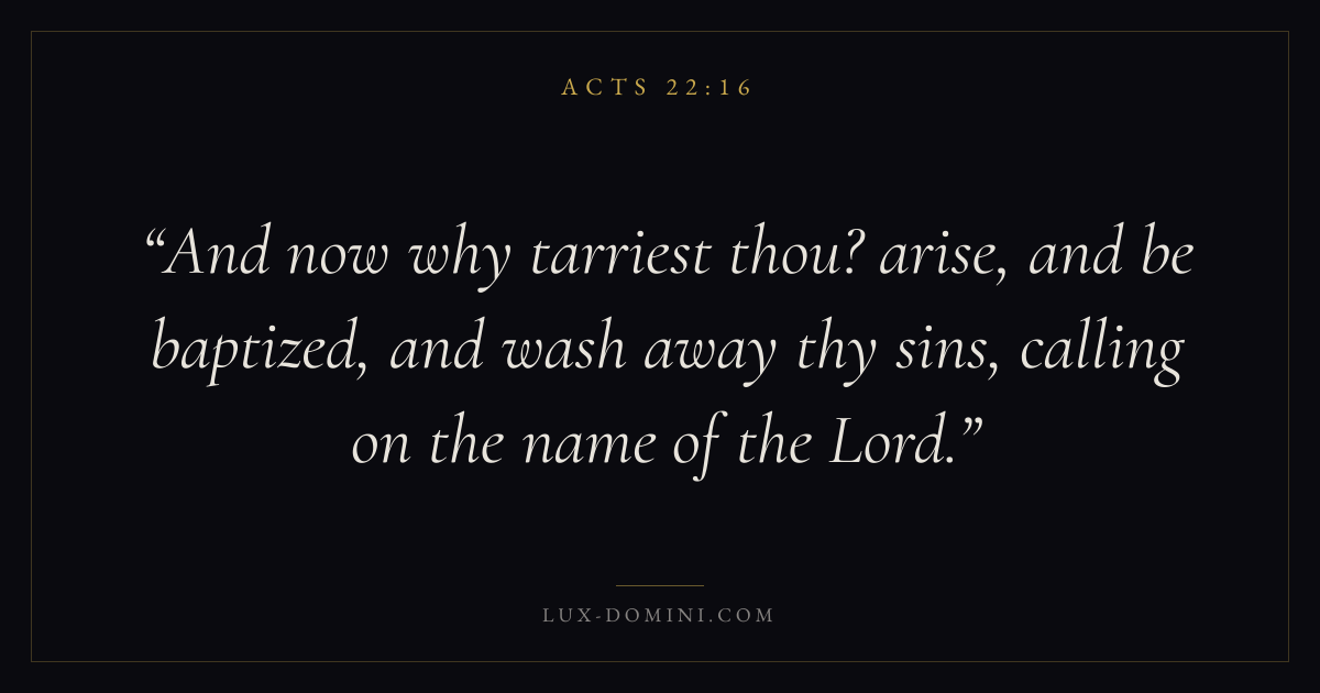 And now why tarriest thou? arise, and be baptized, and wash away thy sins, calling on the name of the Lord.