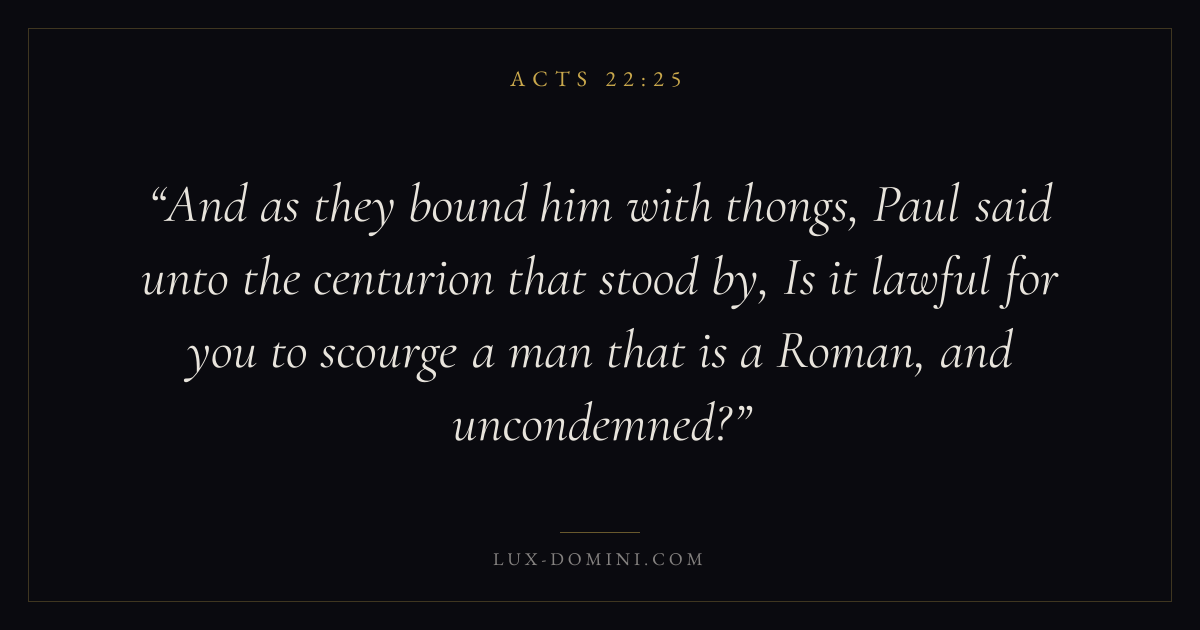 And as they bound him with thongs, Paul said unto the centurion that stood by, Is it lawful for you to scourge a man that is a Roman, and uncondemned?