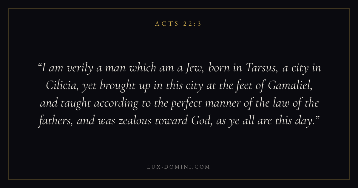 I am verily a man which am a Jew, born in Tarsus, a city in Cilicia, yet brought up in this city at the feet of Gamaliel, and taught according to the perfect manner of the law of the fathers, and was zealous toward God, as ye all are this day.