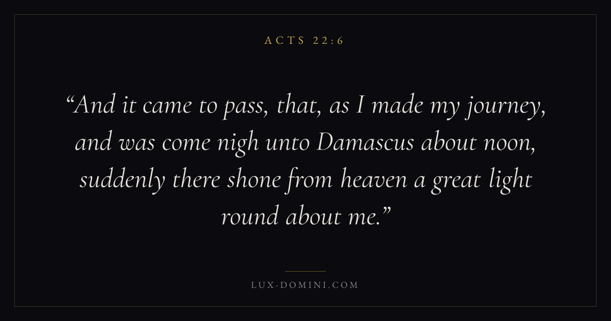 And it came to pass, that, as I made my journey, and was come nigh unto Damascus about noon, suddenly there shone from heaven a great light round about me.