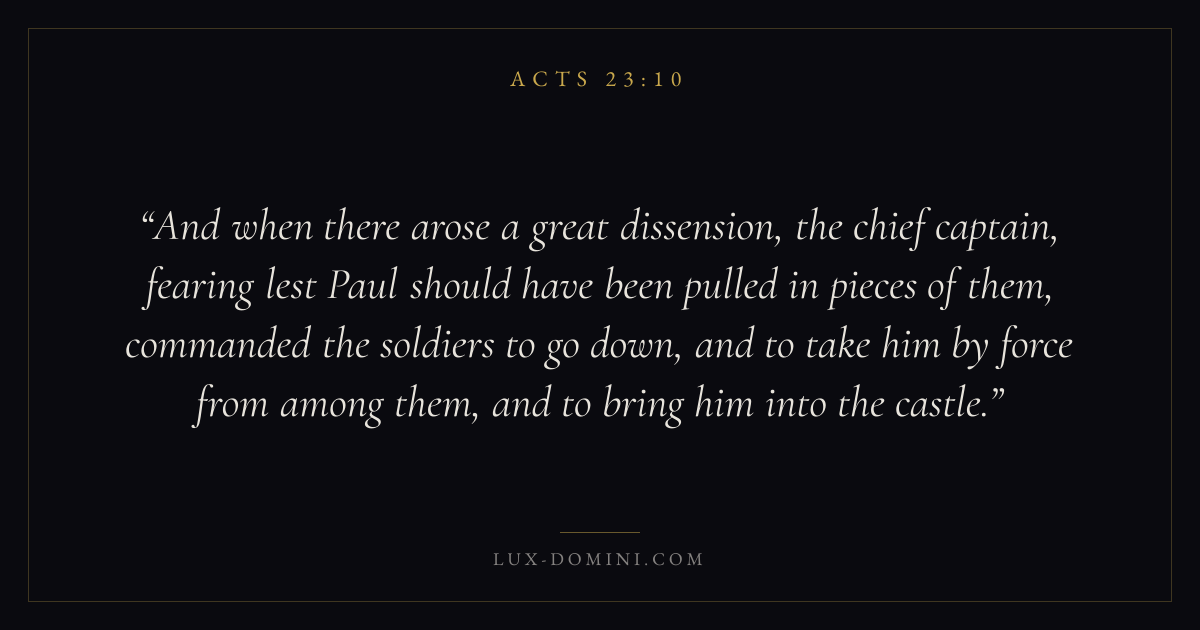 And when there arose a great dissension, the chief captain, fearing lest Paul should have been pulled in pieces of them, commanded the soldiers to go down, and to take him by force from among them, and to bring him into the castle.