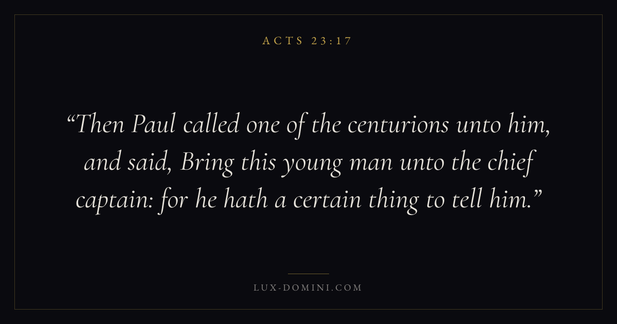Then Paul called one of the centurions unto him, and said, Bring this young man unto the chief captain: for he hath a certain thing to tell him.