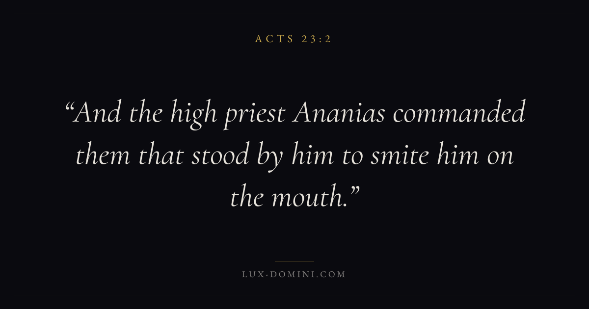 And the high priest Ananias commanded them that stood by him to smite him on the mouth.