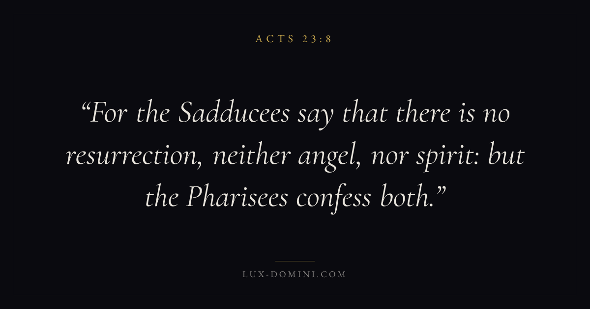 For the Sadducees say that there is no resurrection, neither angel, nor spirit: but the Pharisees confess both.
