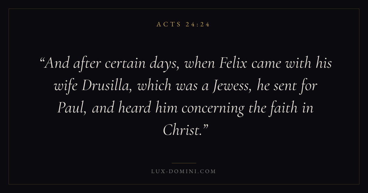 And after certain days, when Felix came with his wife Drusilla, which was a Jewess, he sent for Paul, and heard him concerning the faith in Christ.