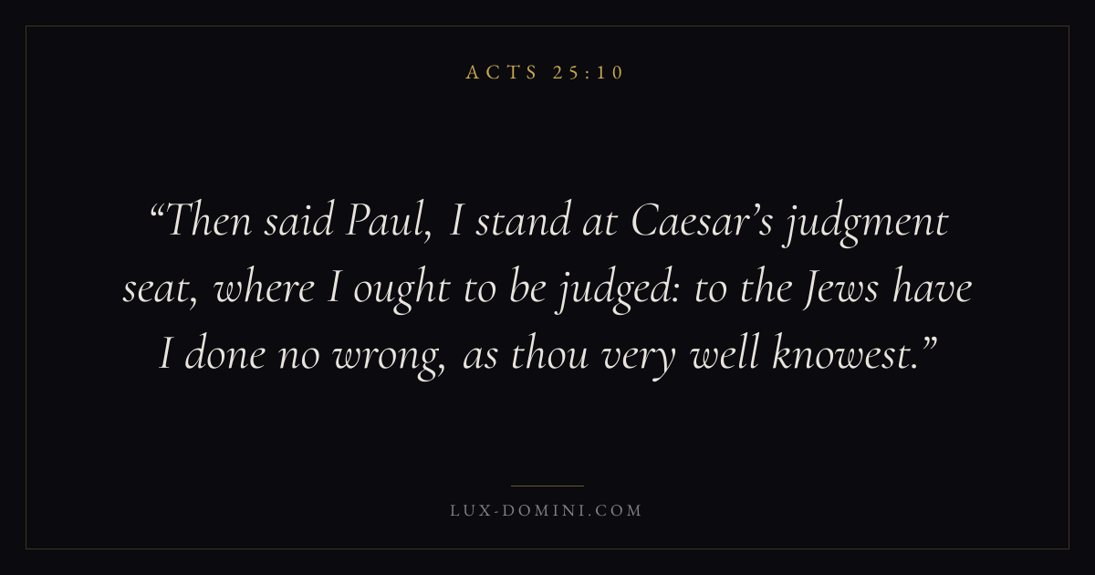 Then said Paul, I stand at Caesar’s judgment seat, where I ought to be judged: to the Jews have I done no wrong, as thou very well knowest.