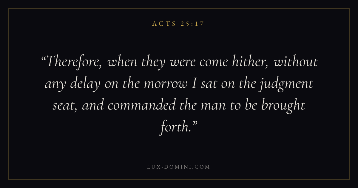 Therefore, when they were come hither, without any delay on the morrow I sat on the judgment seat, and commanded the man to be brought forth.