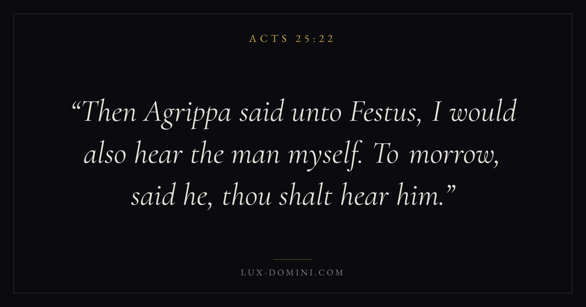 Then Agrippa said unto Festus, I would also hear the man myself. To morrow, said he, thou shalt hear him.