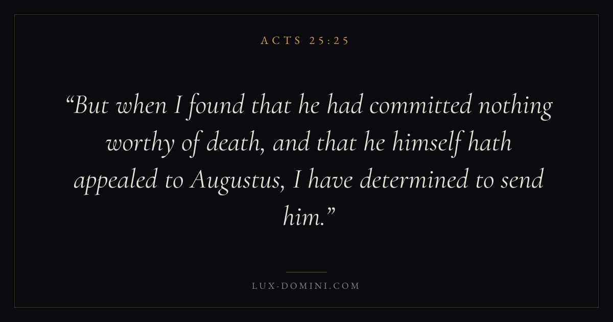 But when I found that he had committed nothing worthy of death, and that he himself hath appealed to Augustus, I have determined to send him.