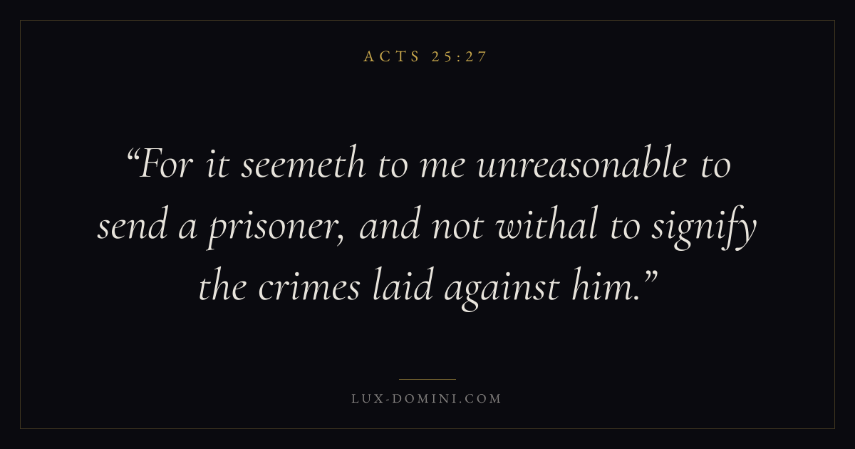 For it seemeth to me unreasonable to send a prisoner, and not withal to signify the crimes laid against him.