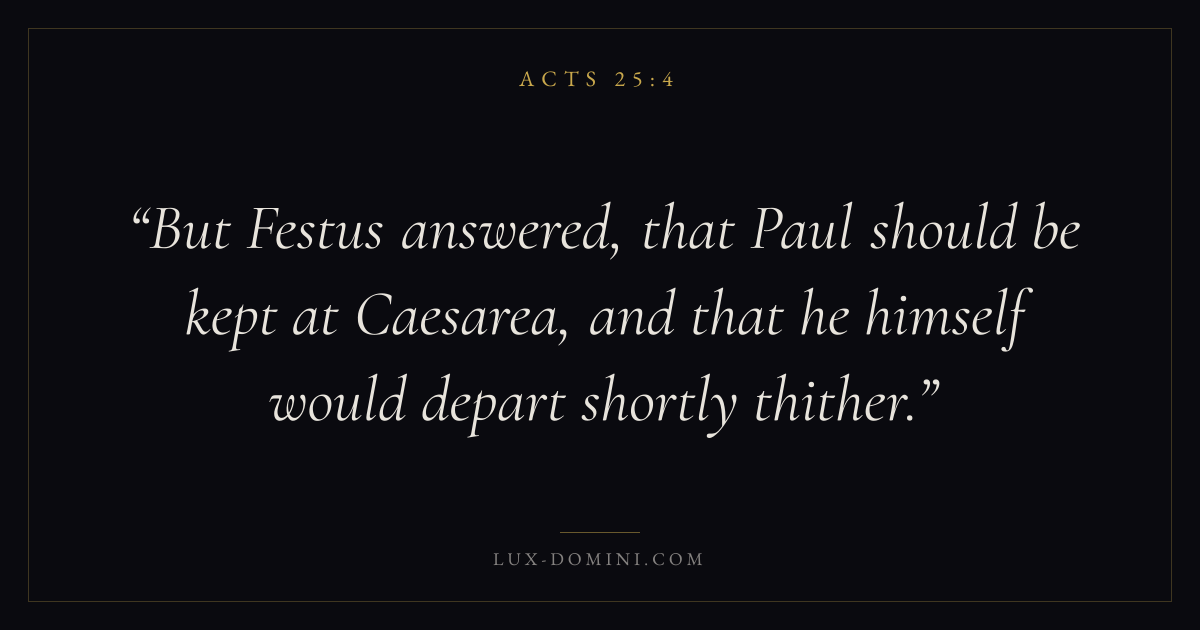But Festus answered, that Paul should be kept at Caesarea, and that he himself would depart shortly thither.