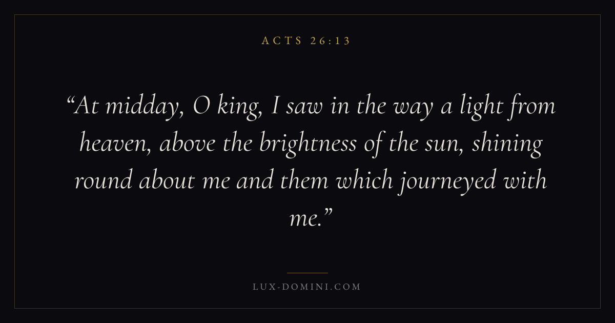 At midday, O king, I saw in the way a light from heaven, above the brightness of the sun, shining round about me and them which journeyed with me.