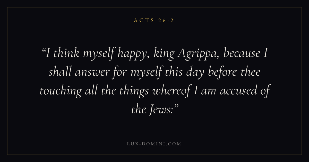 I think myself happy, king Agrippa, because I shall answer for myself this day before thee touching all the things whereof I am accused of the Jews: